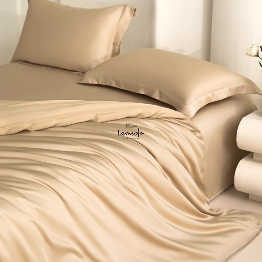 Bộ chăn ga gối 5 món lụa tencel 60s Be nâu