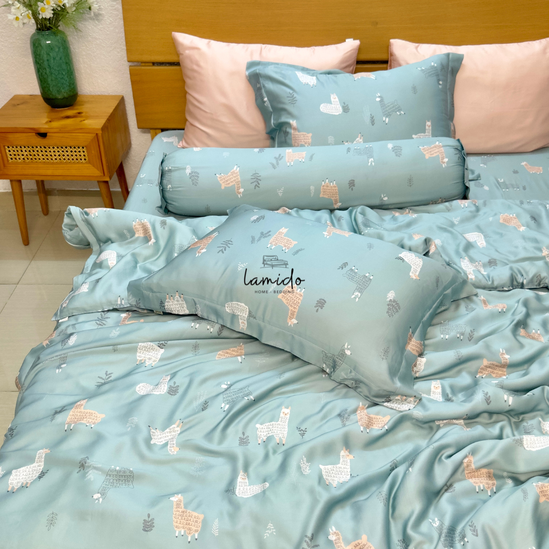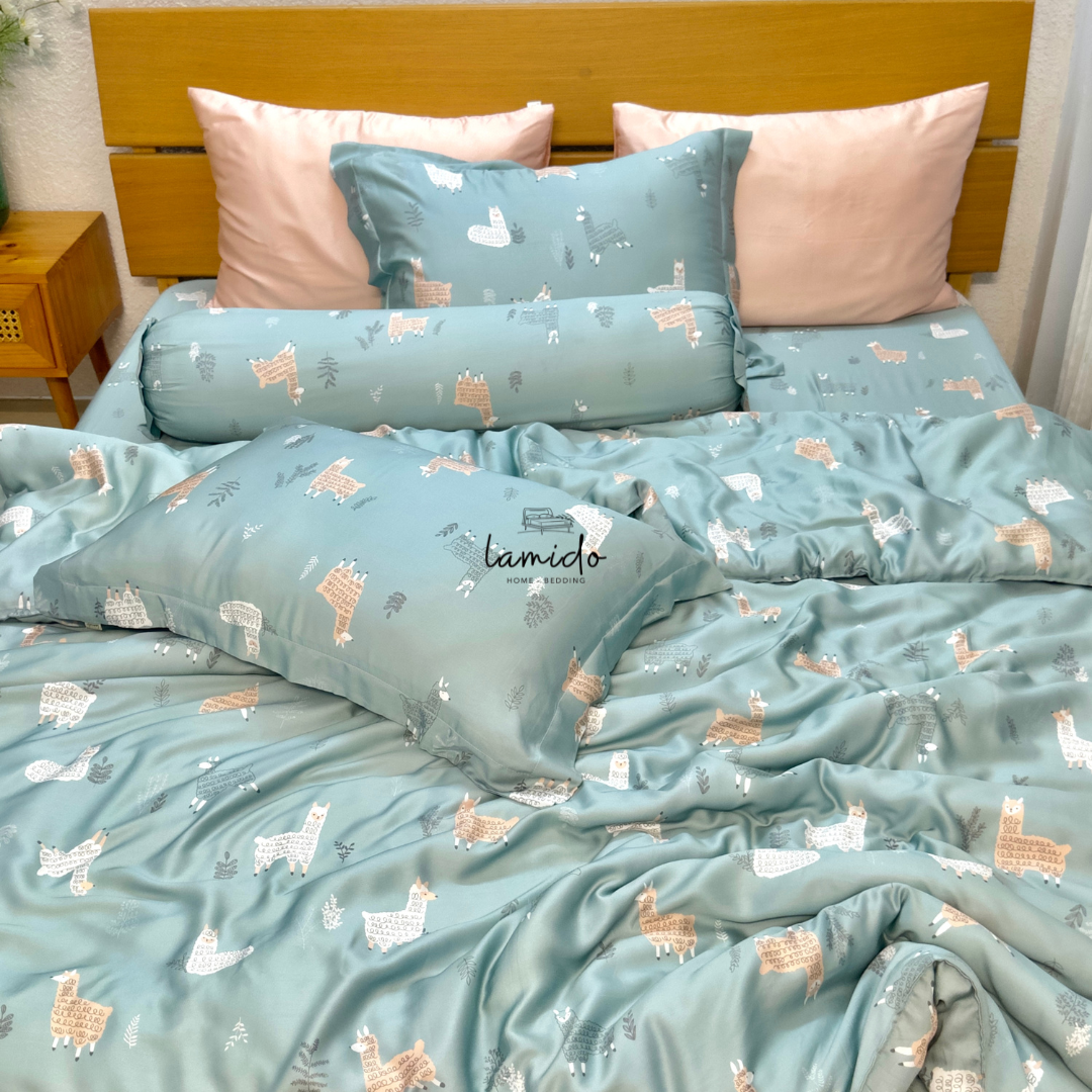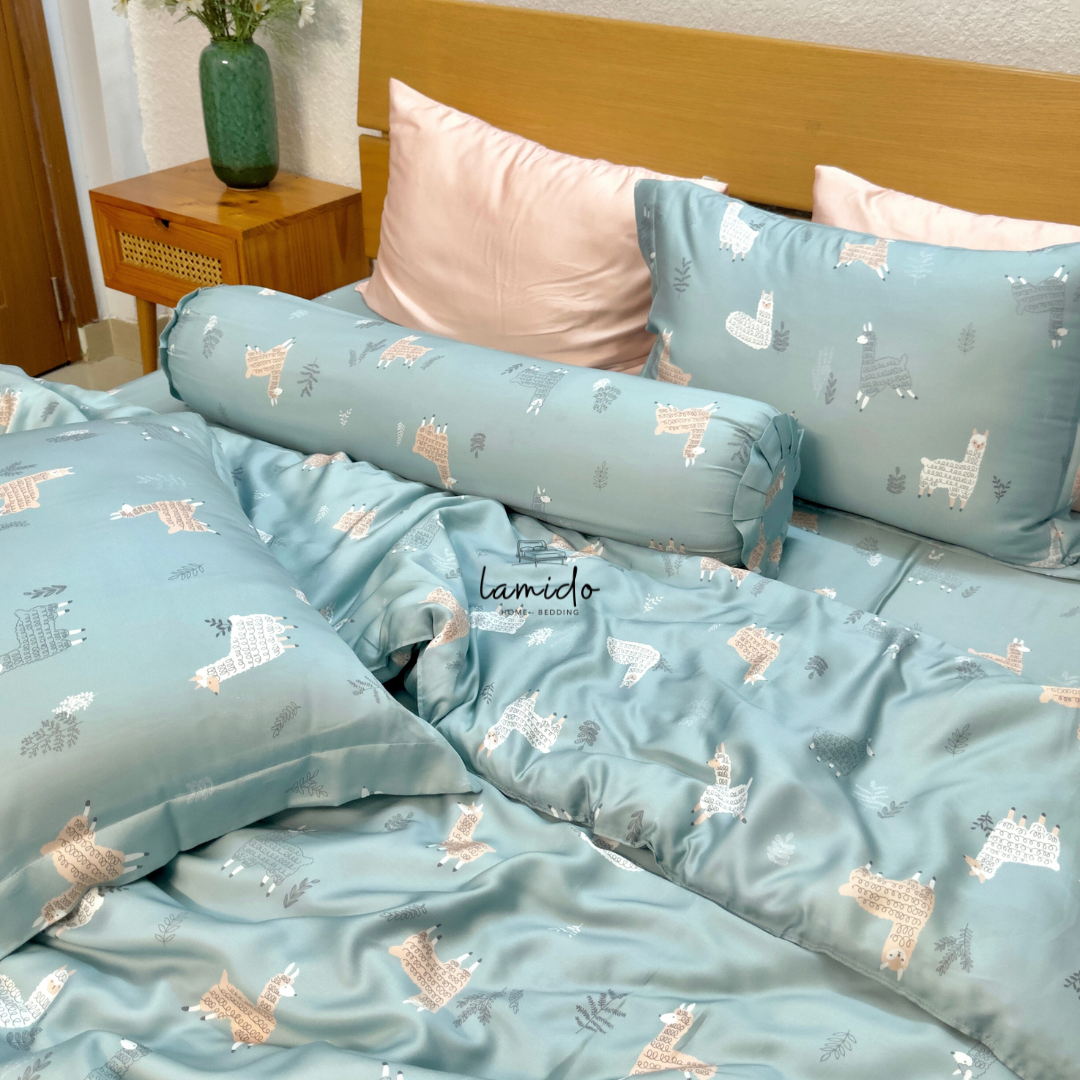 Bộ chăn ga gối 5 món lụa tencel 60s Cừu Xanh