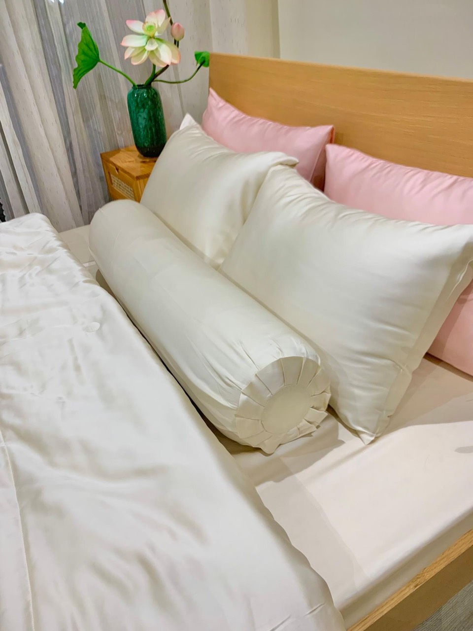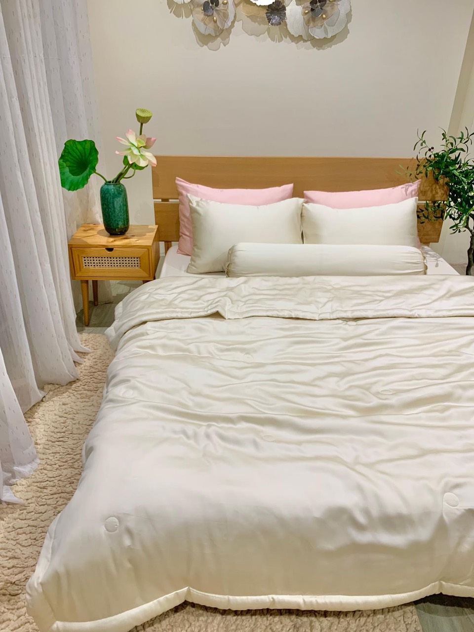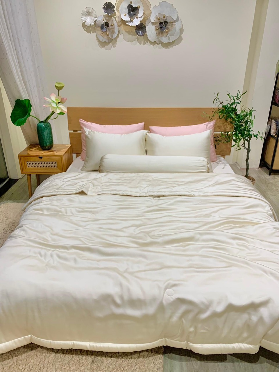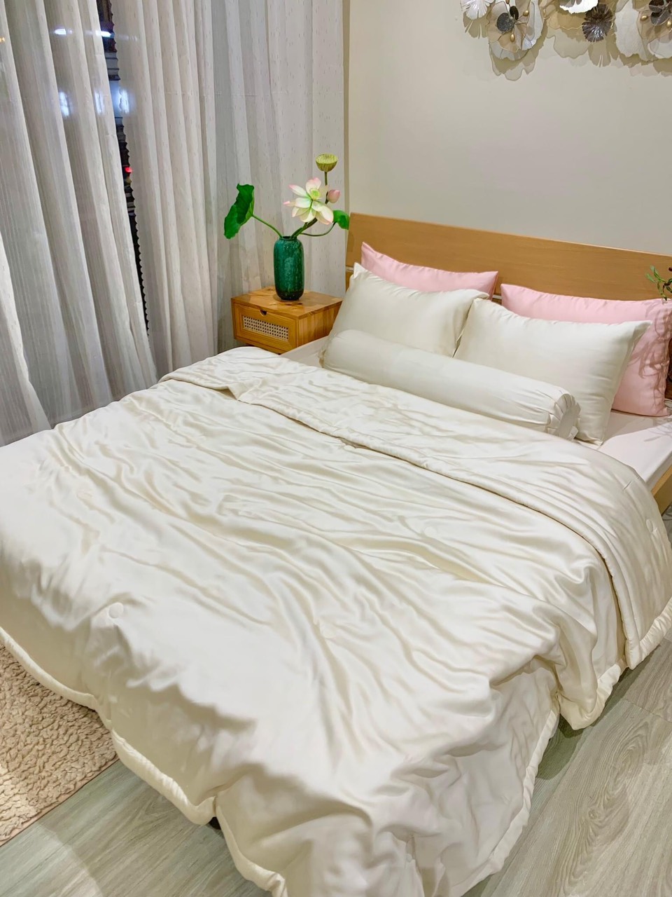 Bộ chăn ga gối 5 món Lụa Tencel Trơn 60s Be Sữa