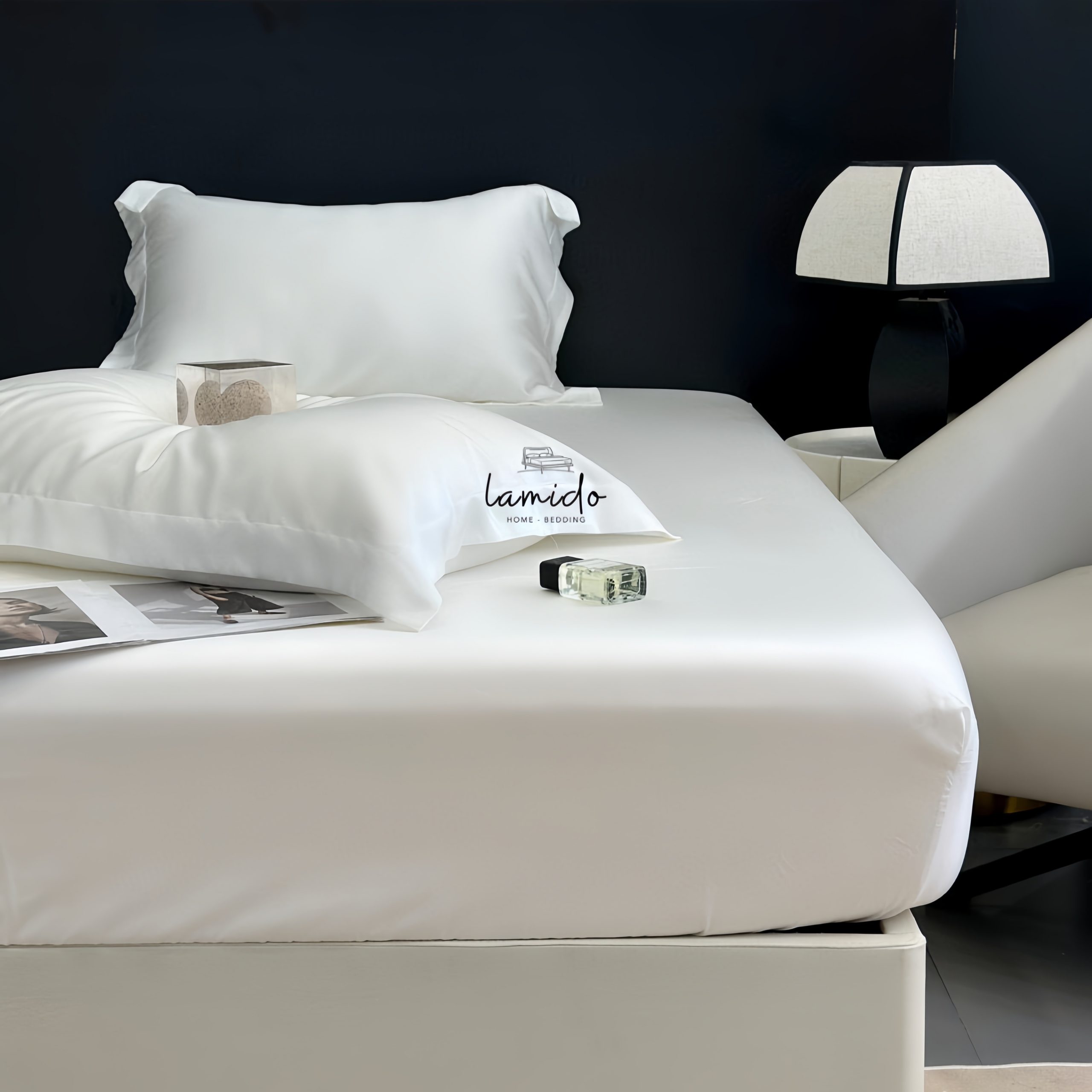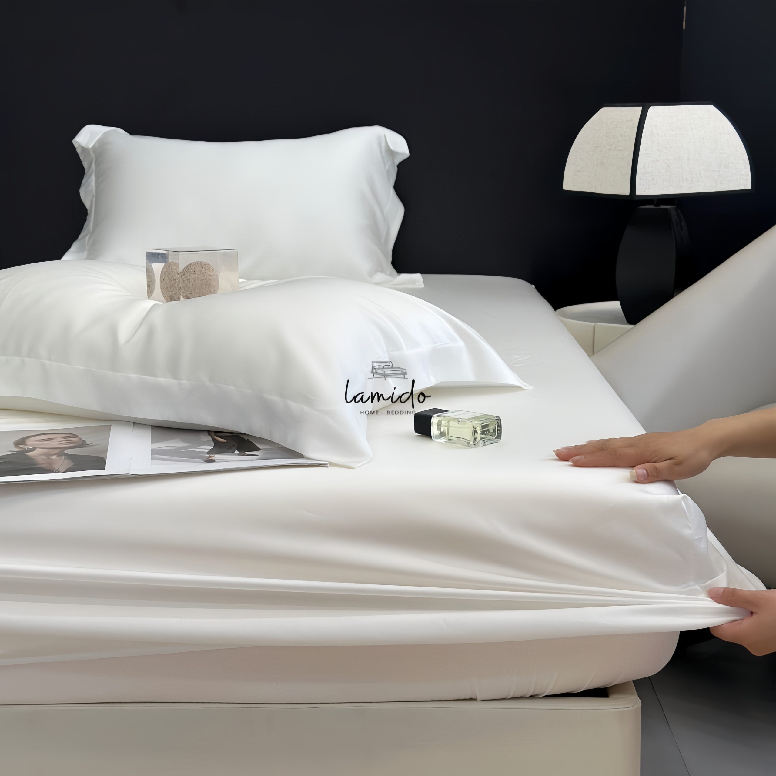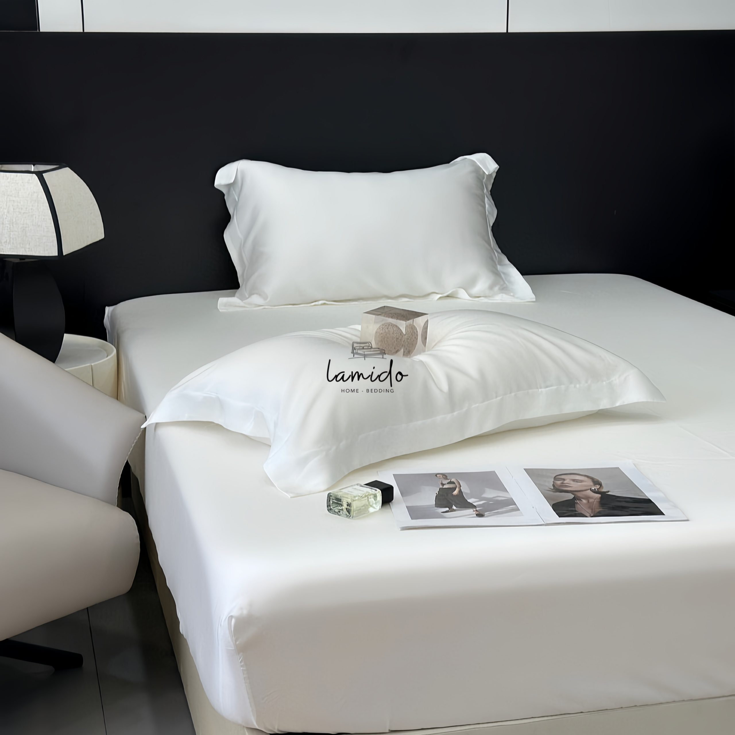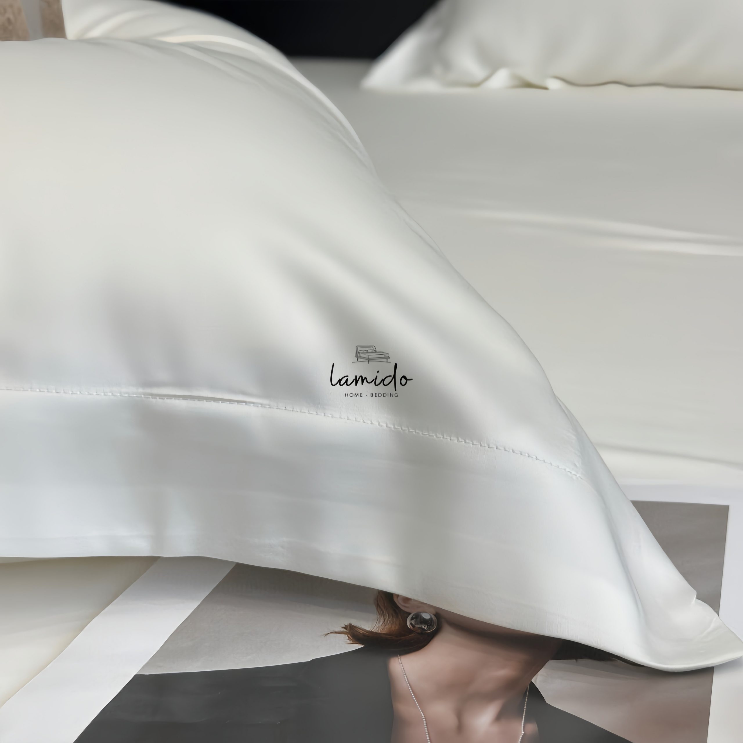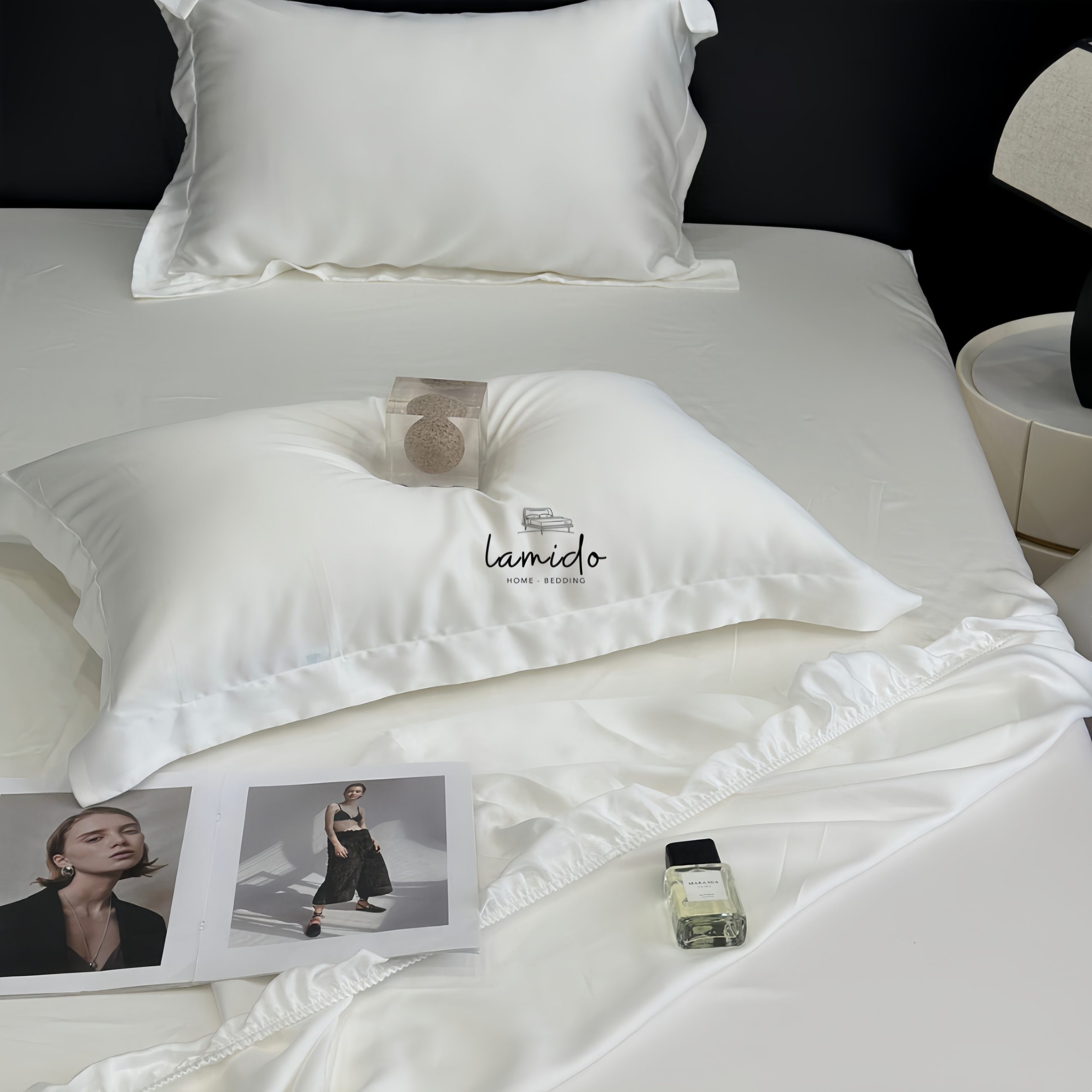Bộ chăn ga gối 5 món lụa Tencel 60s Trắng