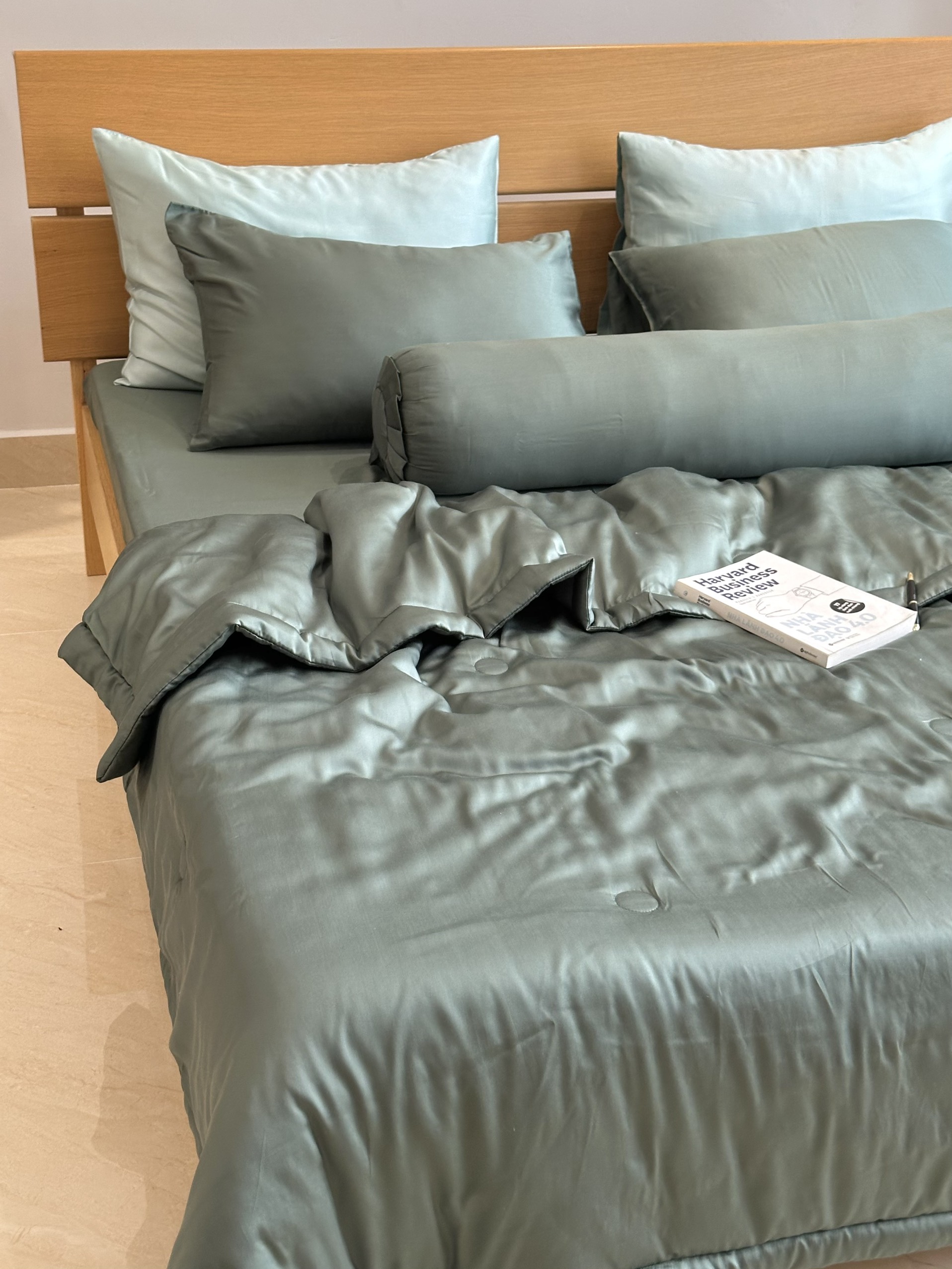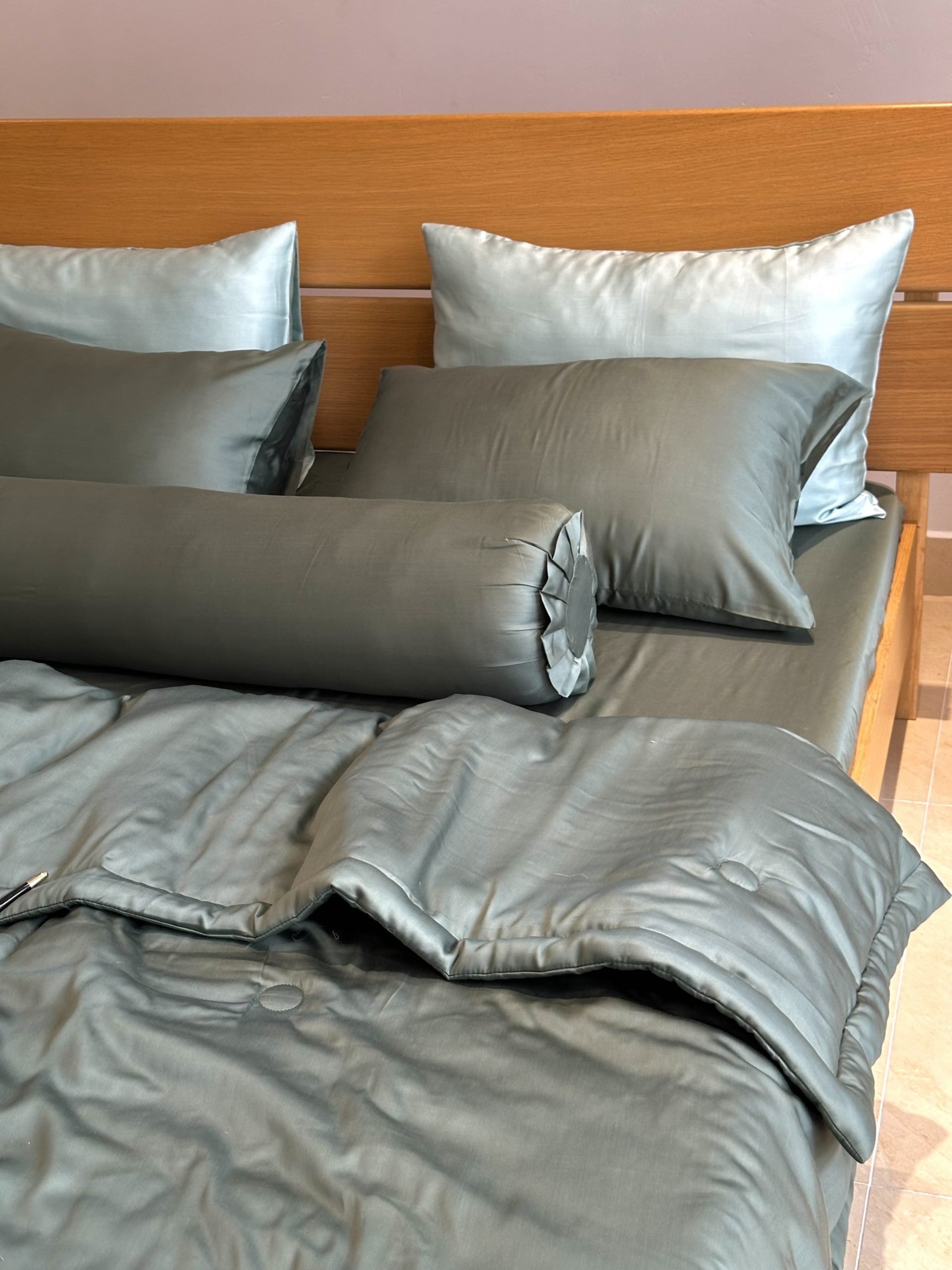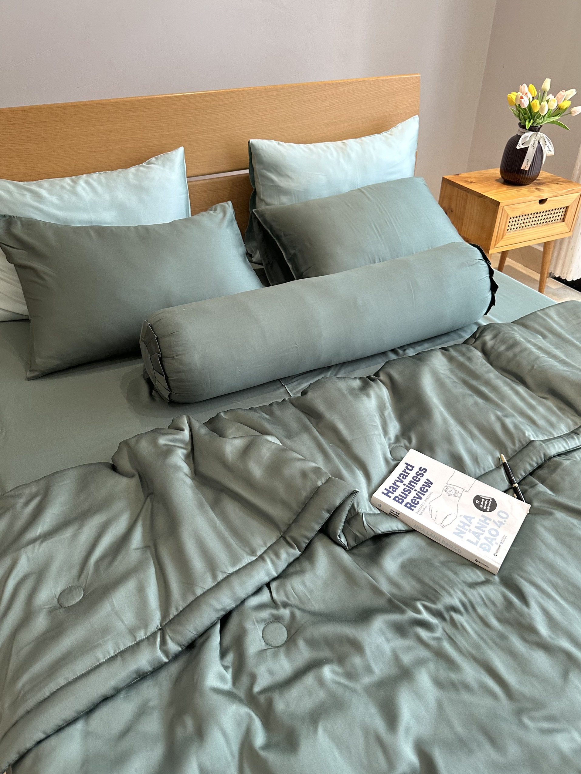 • Quy cách: 2 vỏ gối nằm dạng lồng kích thước 50X70cm, 1 vỏ ôm dạng dây kéo kích thước 35x100cm, 1 ga bọc niệm có kích thước tùy chỉnh, khách hàng có thể lựa chọn 1 trong 2 sản phẩm chăn chần hoặc vỏ chăn có kích thước 2m x 2m2 theo nhu cầu sử dụng. Bộ sản phẩm dùng chung với ruột gối, ruột mền có kích thước tương ứng.