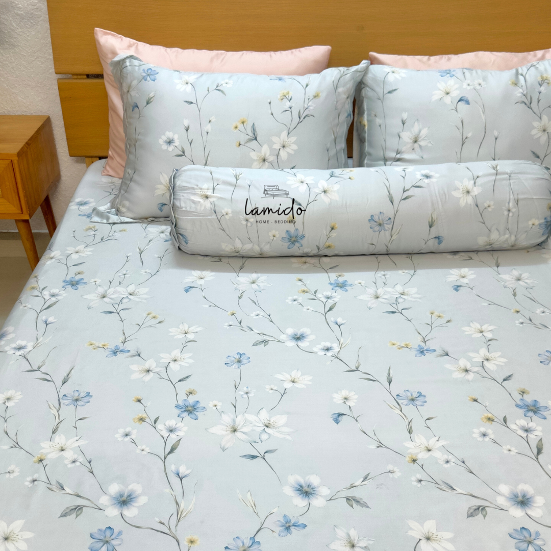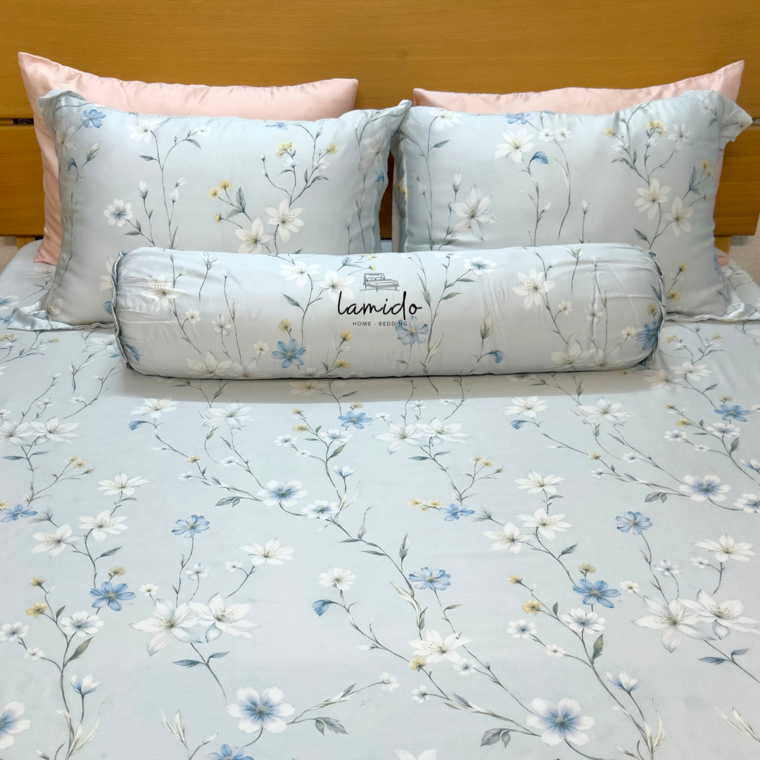 Ga trải giường lụa Tencel 80s Bông Xanh Nhạt