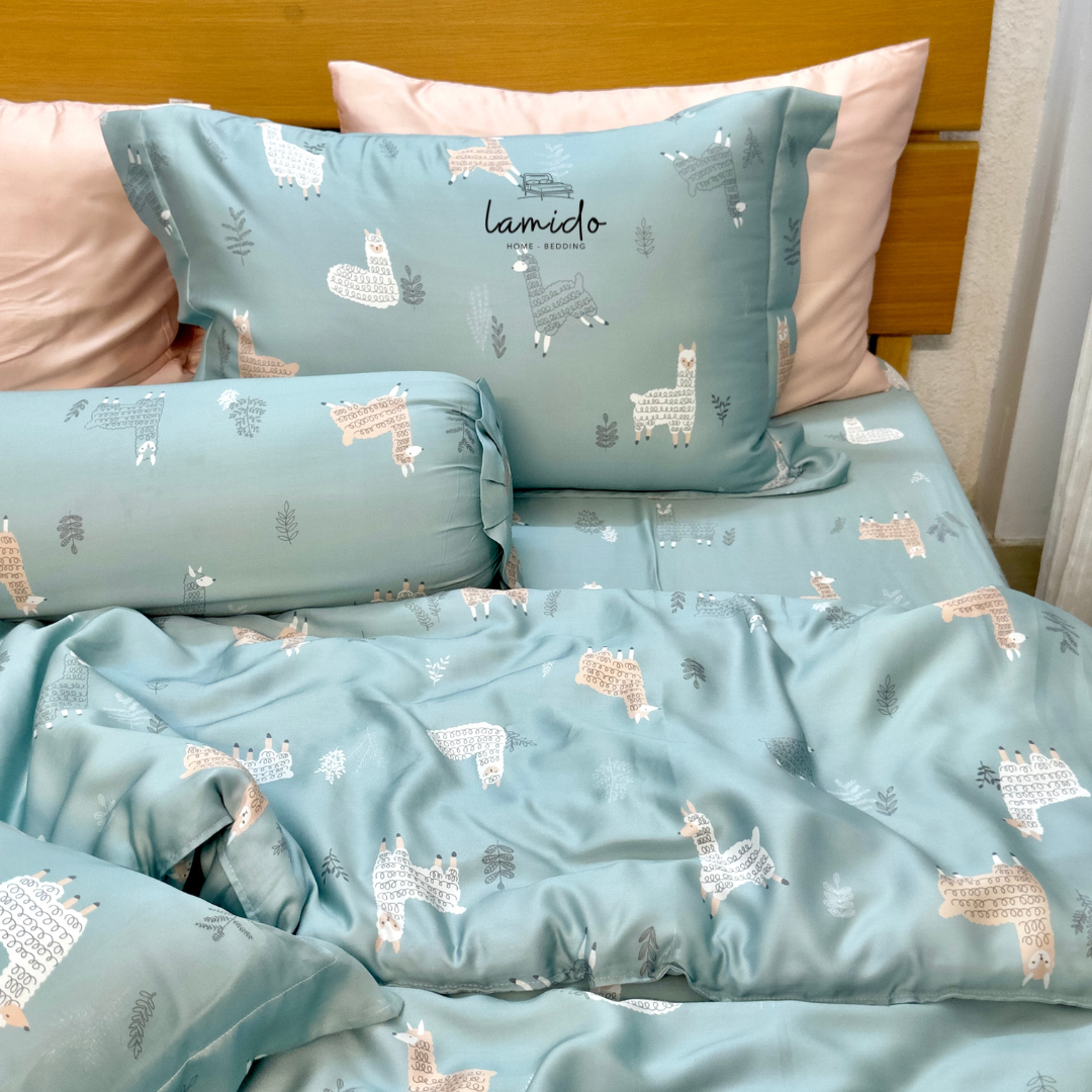 Vỏ gối nằm lụa tencel họa tiết Cừu Xanh