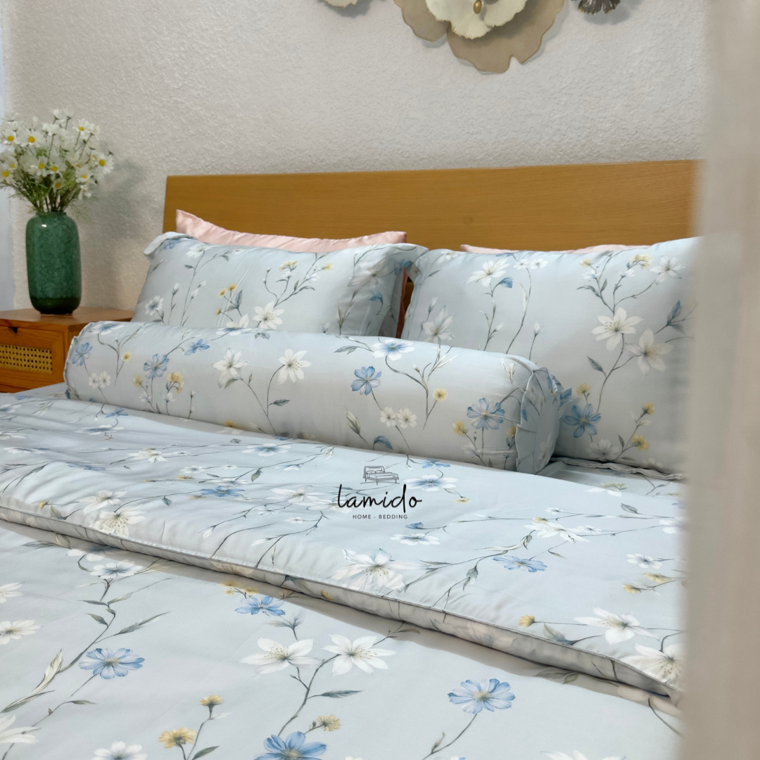 Vỏ gối nằm lụa tencel Bông Xanh Nhạt