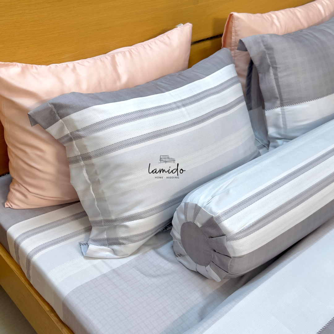 Vỏ gối ôm lụa tencel Sọc Xám Ngang